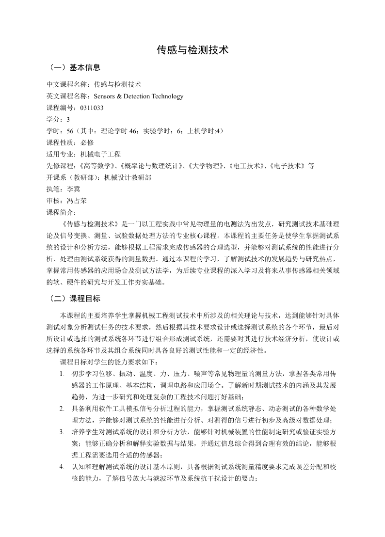 传感与检测技术教学大纲